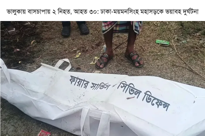 ভালুকায় বাসচাপায় ২ নিহত, আহত ৩০: ঢাকা-ময়মনসিংহ মহাসড়কে ভয়াবহ দুর্ঘটনা