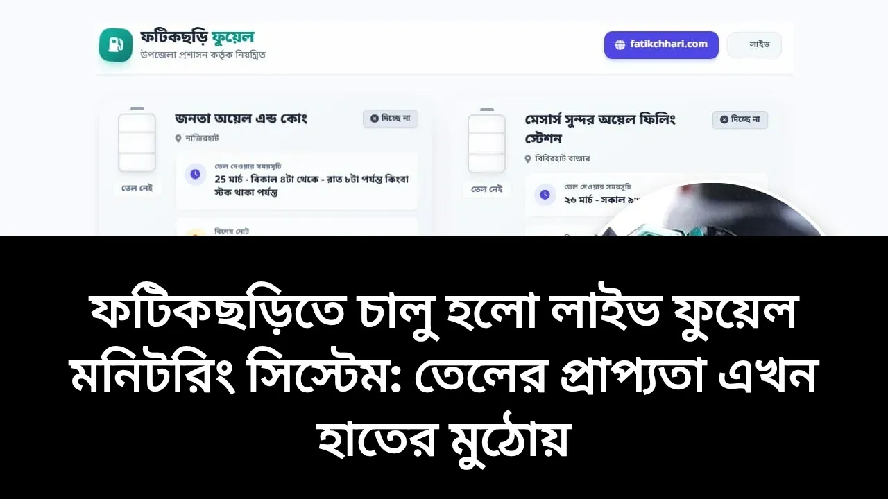 চট্টগ্রামের ফটিকছড়িতে জ্বালানি তেলের সরবরাহ সংক্রান্ত ভোগান্তি লাঘবে চালু হয়েছে এক নতুন ডিজিটাল উদ্যোগ – ‘লাইভ ফুয়েল মনিটরিং সিস্টেম’। এই অত্যাধুনিক প্ল্যাটফর্মের মাধ্যমে ব্যবহারকারীরা তাদের স্মার্টফোনে মাত্র এক ক্লিকেই জানতে পারবেন কোন পাম্পে তেল পাওয়া যাচ্ছে, কখন সরবরাহ চলছে এবং মজুতের সর্বশেষ অবস্থা কী।
